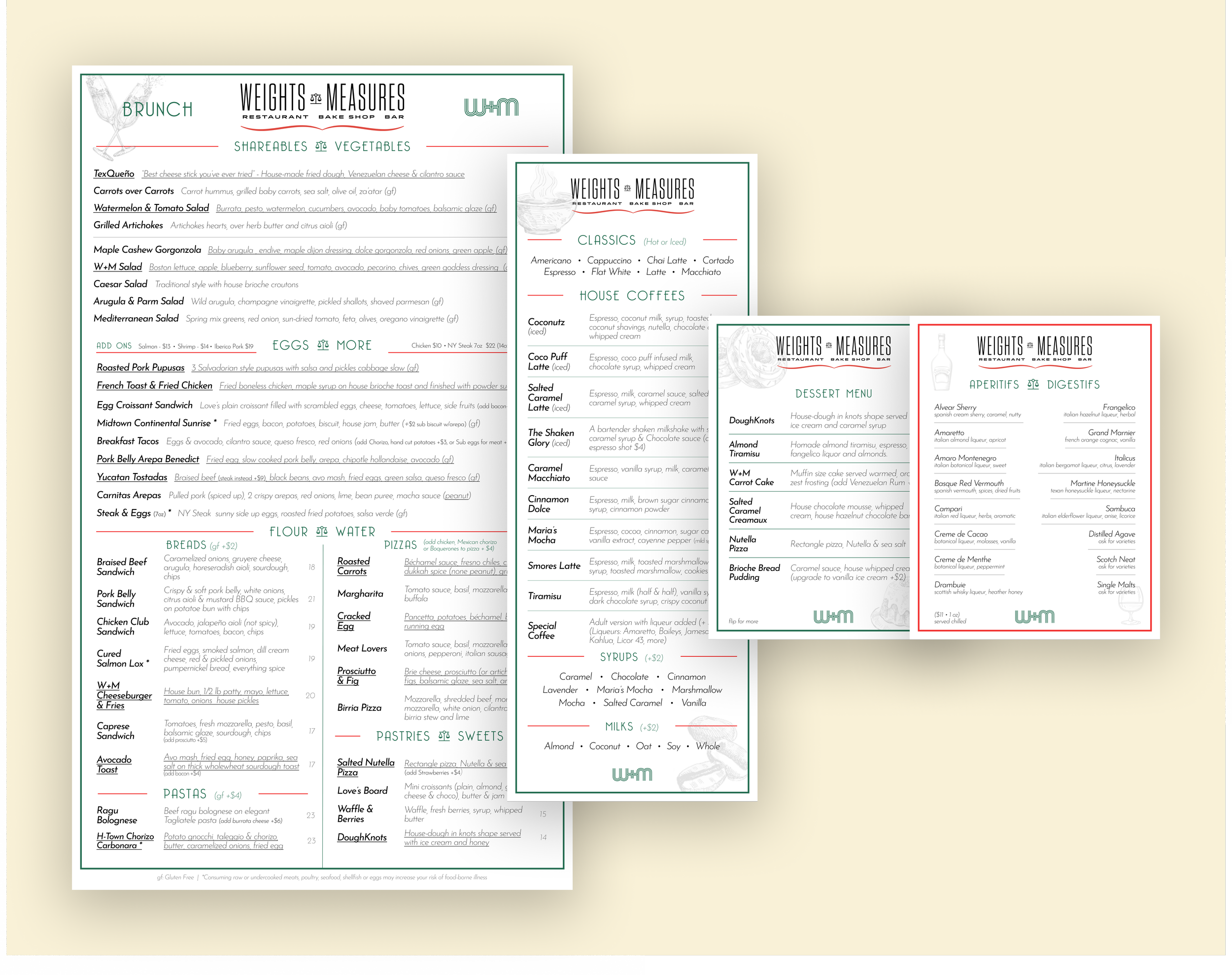 In 2024, Weights + Measures welcomed in new ownership that recognized the need to freshen up the existing look. Serving as an intern bartender at the time, I worked directly with ownership to redefine the concept and create a new identity.